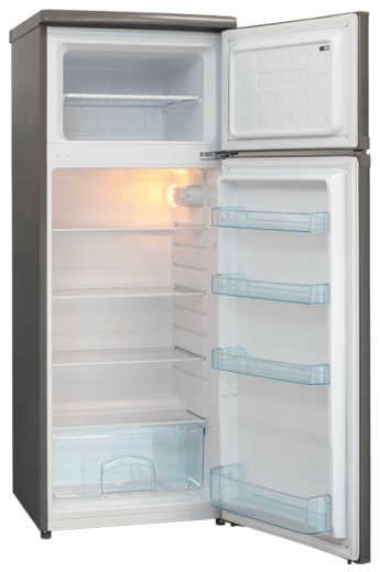 Nevera de 206 litros con dos puertas exteriores. Tiene un compartimento de refrigeración de 169 litros, y un compartimento congelador**** separado y con acceso independiente de 37 litros. Excelente capacidad de enfriamiento y congelación con bajo consumo energético.